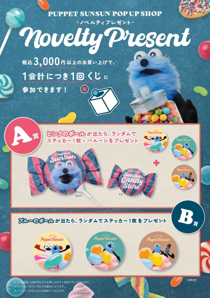 パペットスンスンの期間限定ポップアップショップ「SUNSUN Candy Store」が、2025年12月26日(金)の東京会場を皮切りに、全国6都市での開催が決定しました。
